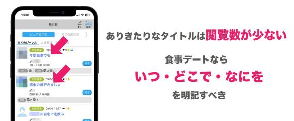 ピュア掲示板で食事デートを募集しても良いですが、ほかの投稿に埋もれてしまいスルーされるので募集内容によって使い分けると良いです。