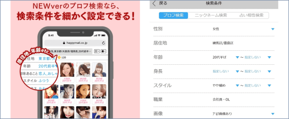 ハッピーメールは、セフレ作りに必要不可欠な検索が最も優れた出会い系です。2023年に大幅リニューアルして、他アプリよりも細かい検索が可能になりました。