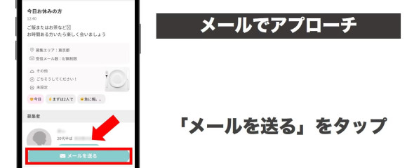 掲示板の募集タイトルを選択すると、相手の募集内容が確認できます。内容が気になったら、メールを送って相手にアプローチしましょう。