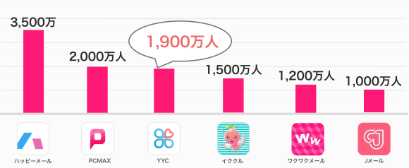 YYCの会員数は1,900万人で、出会いやすい環境が整っています。気軽な出会いを求めるユーザーが多く、出会いまでのハードルは低いでしょう。