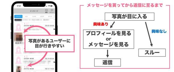 男性と違い女性は大量のメッセージが届くので、写真を設定していないユーザーはメッセージを開いてくれません。