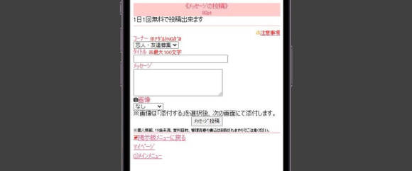 掲示板に投稿することで、募集を見た女性からアプローチがくる可能性が上がります。本来投稿には5ポイントかかるので、1日1回無料で掲示板に投稿できるのはお得です。