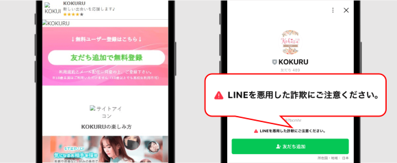 KOKURUにはLINE版もありますが、登録しないでください。個人情報を抜き取られる危険があります。