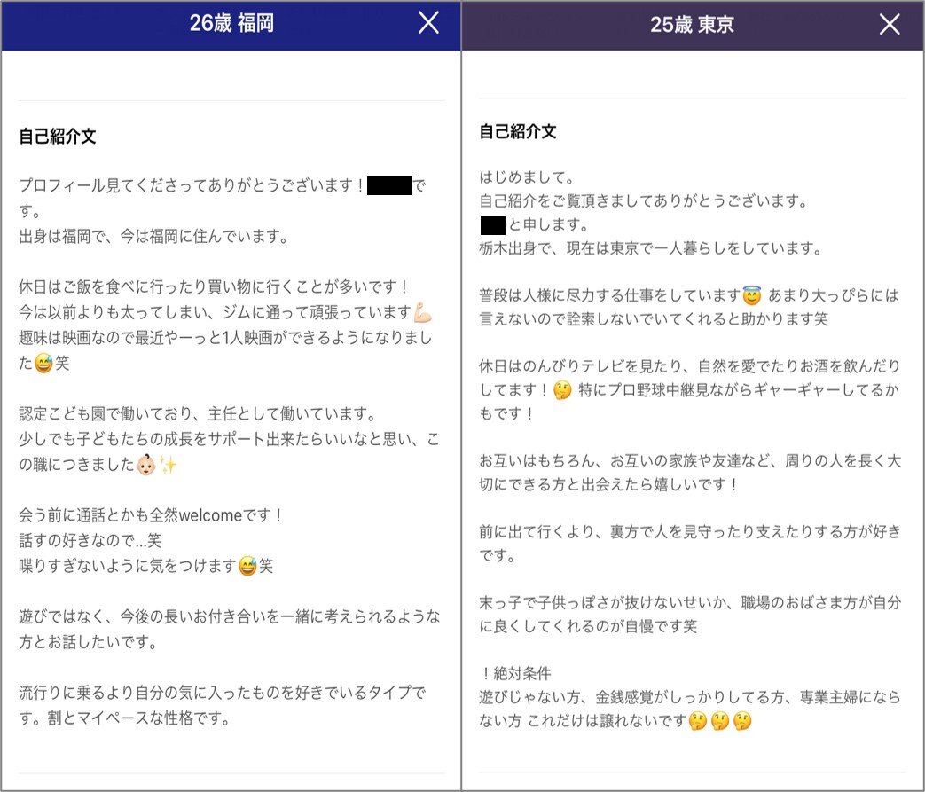 また、プロフィールに関しても、内容が薄かったりほとんど記載がない場合は業者の可能性が高いです。いいねを押す場合は、相手のプロフィールをしっかり読んでから押すようにしましょう。
