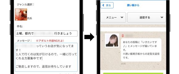 編集部のおすすめは「掲示板投稿」機能です。Jメールにある「誘い飯掲示板」では、食事デート前提で募集できるので、効率的かつスピーディに出会えます。