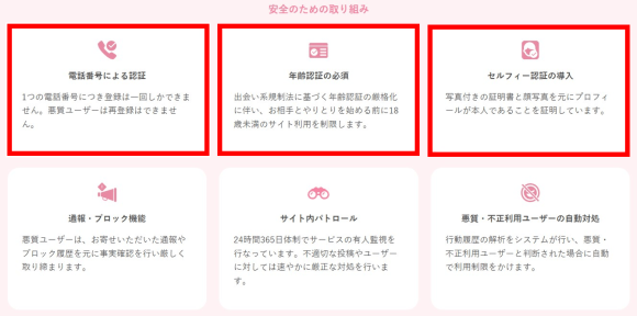 | ②業者の少なさ | ・安全性の高いサイトか ・業者を避ける機能があるか |