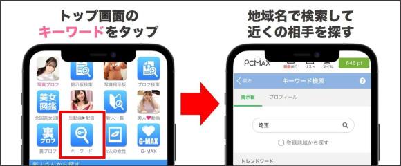 PCMAXで埼玉在住の相手を探すなら、キーワード検索を利用しましょう。キーワード検索とは、特定の文言がプロフィールに入っている異性を絞り込む検索方法です。
