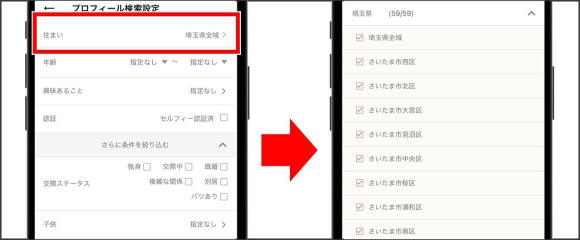 ワクワクメールで埼玉の異性と出会うなら、プロフィール検索を利用しましょう。プロフィール検索では市町村まで居住地を絞って探せます。
