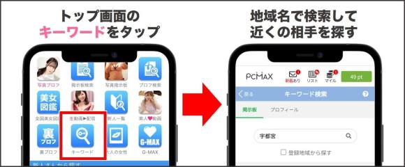 PCMAXで宇都宮在住の相手を探すなら、キーワード検索を利用しましょう。キーワード検索とは、特定の文言がプロフィールに入っている異性を絞り込む検索方法です。