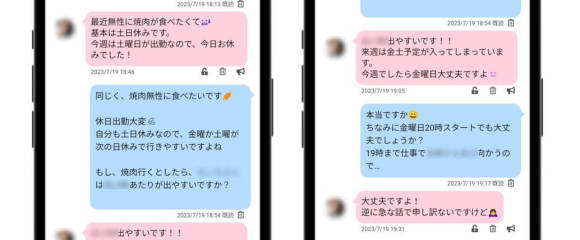 日頃の夜勤でストレスが溜まっていて、自分のご褒美に美味しいもの食べたいと思っていたそうです。好きな食べ物や次の休みを聞いていき、デートのタイミングを伺っていました。