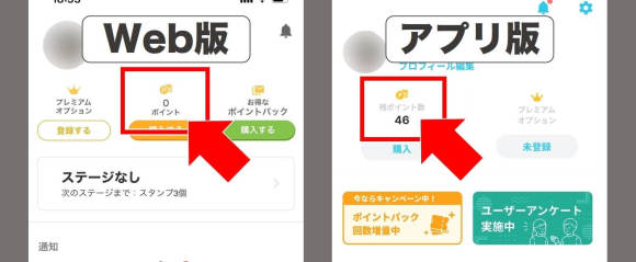 YYCはWeb版とアプリ版で、ポイントが別れています。例えばアプリ版で買ったポイントは、同じアカウントでWeb版にログインしても使えません。